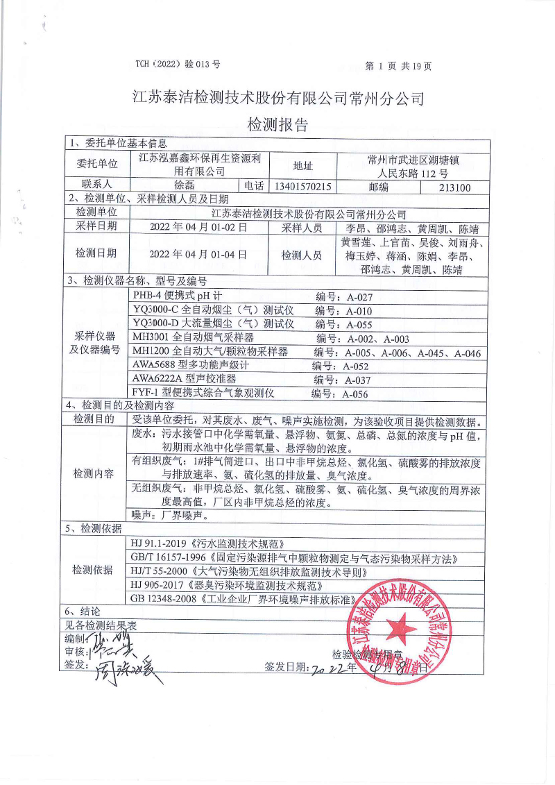 江苏泓嘉鑫环保再生资源利用有限公司成立于2019年9月30日,位于常州市武进区湖塘镇东升31号。根据《关于印发江苏省危险废物集中收集贮存试点工作方案的通知》(苏环办[2019]390号),为解决常州市范围内中小型产废企业少量危险废物无法得到正规化处置的矛盾,我公司从2019年10月开始筹备“危险废物···